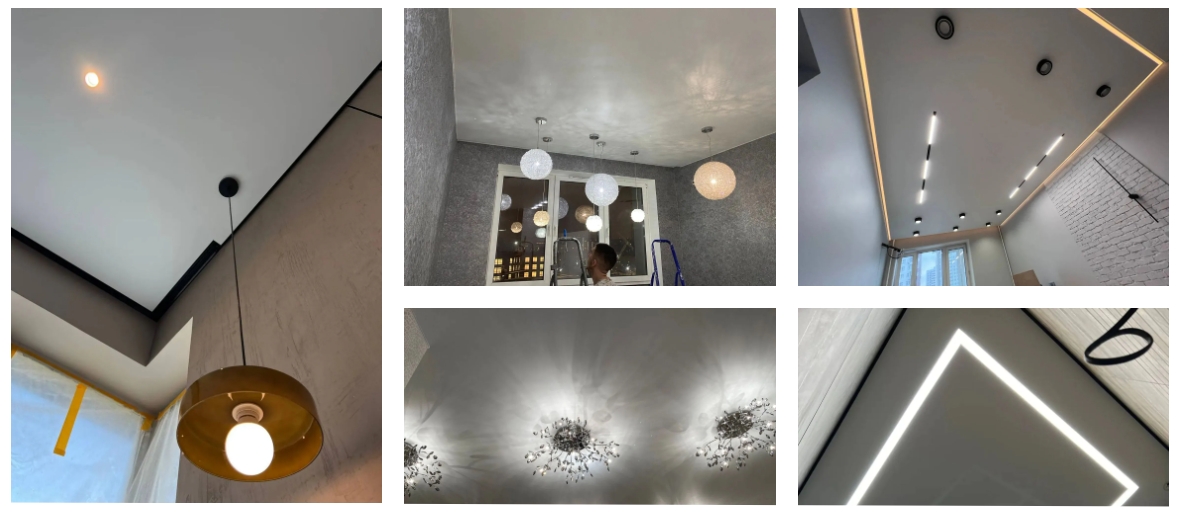 Благодаря широкому выбору текстур и цветов можно подобрать вариант под любой стиль — от классики до минимализма. Для офисов и коммерческих помещений популярны потолки с фотопечатью или встроенным освещением, которые подчёркивают индивидуальность бренда.